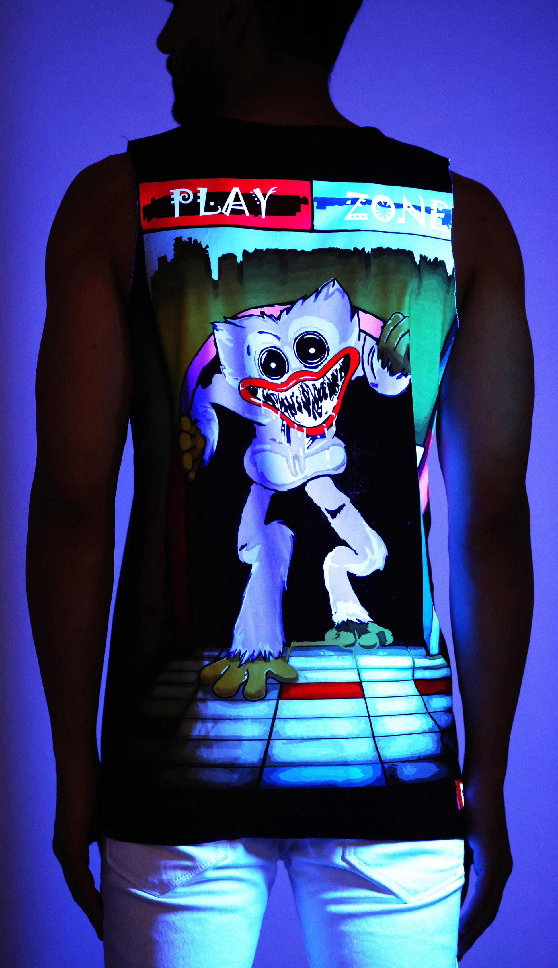 PSY HUGGY BUGGY PLAY | UV Reactive Art | All Over Print SANDO